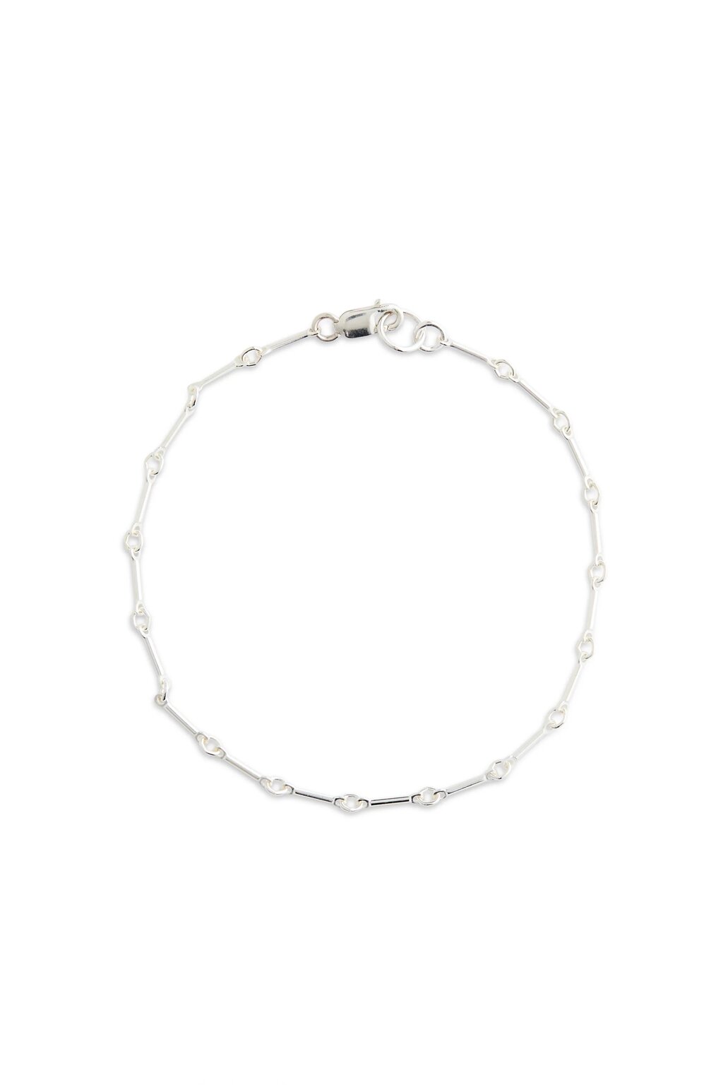 A classic linked bar chain bracelet made of Sterling Silver. Perfect for a minimal statement or for adding interest layered.
