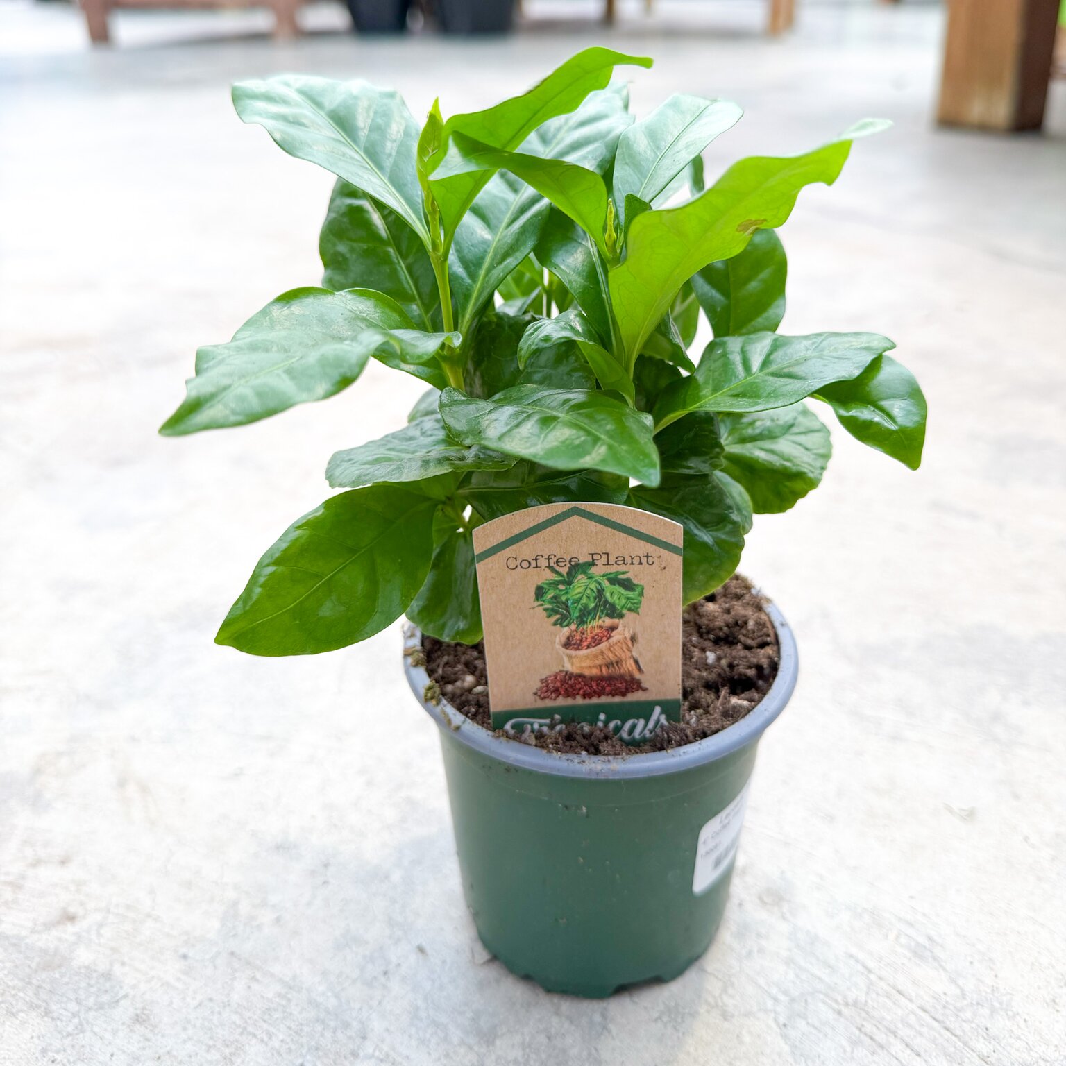 Coffee plants (Coffea arabica) are attractive tropical houseplants known for their glossy, deep green leaves and naturally upright growth habit. While they are the same species used to produce coffee beans, indoors they are grown primarily for their lush foliage and tidy form rather than harvest. Coffee plants add a fresh, leafy look to bright rooms and blend well with other tropical houseplants.
