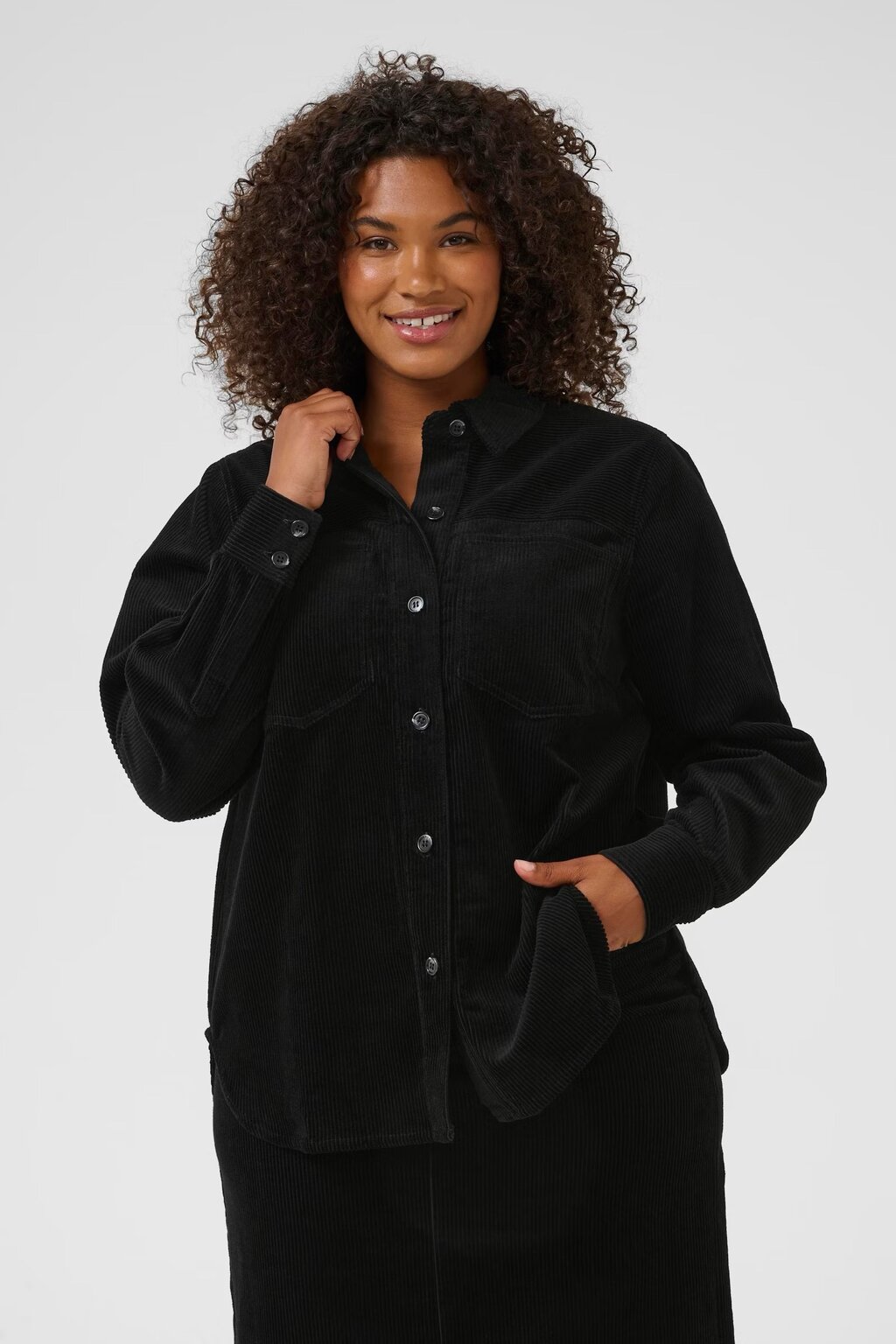 This corduroy overshirt offers a relaxed fit with classic collar and full button placket. Long sleeves and chest pockets highlight smart-casual appeal. Designed for comfort and everyday versatility in layering.